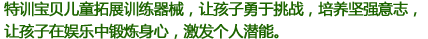 滄州華北特訓(xùn)器械有限公司成立于2002年,是專業(yè)研發(fā)生產(chǎn)心理行為訓(xùn)練器械、拓展器械、拓展器材、攀巖、兒童拓展器械的專業(yè)型企業(yè),并通過ISO-9001質(zhì)量管理體系認證及ISO-14001環(huán)境管理體系認證,致力于各職業(yè)群體提供的心理行為訓(xùn)練器械、拓展器械、攀巖、兒童拓展器械等設(shè)備,使之不斷提升心理健康水平、充分開發(fā)自我潛能。我公司竭誠為廣大客戶提供專業(yè)化各類心理行為訓(xùn)練器械相關(guān)產(chǎn)品和服務(wù)。